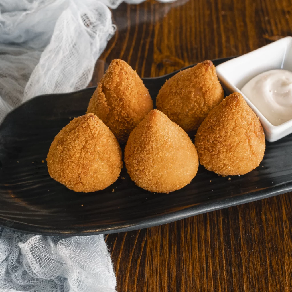 Coxinha : croquette (souvent au poulet) très courante en snacking/sur le pouce.