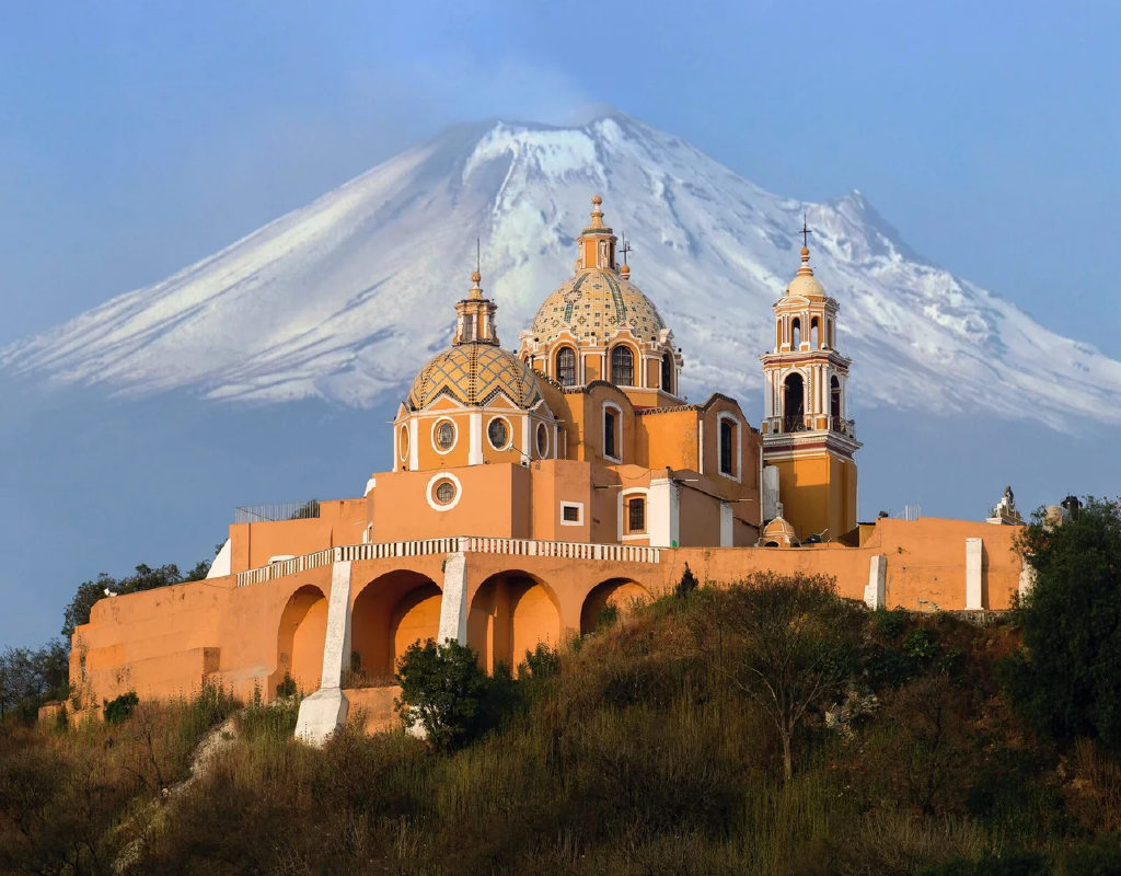 Niché au creux d’une vallée fertile entourée de montagnes, Puebla est célèbre de par ses 60 églises et surtout pour la tradition qui se perpétue, consistant en la fabrication et l’exploitation de carreaux de faïence multicolores. En début d’après-midi, vous partez à la découverte du village de Cholula, au pied du volcan Popocatépetl. Gravissez les centaines de marches de la pyramide sur laquelle trône une majestueuse église coloniale construite à l’arrivée des espagnols, sous les ordres d’Hernán Cortés qui, pour mettre fin à la suprématie indienne, donna l’ordre d’y ériger cette dernière, comme pour conjurer le sort.