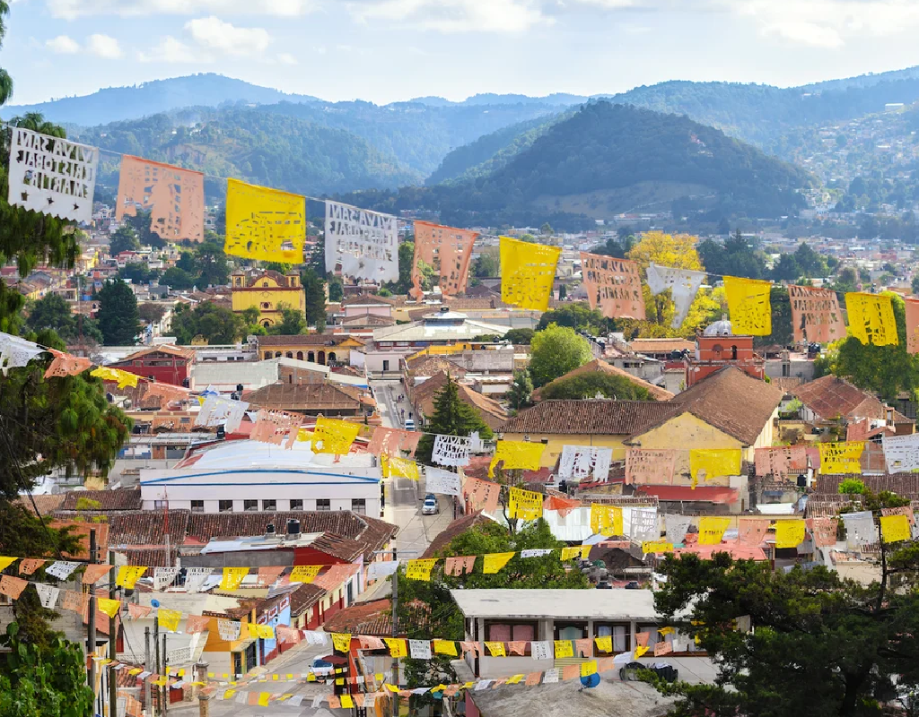 Vous vous réveillez dans ce charmant Pueblo Magico, où chaque matin, les indiens tzotziles vendent leurs produits au marché traditionnel… Vous partez à leur rencontre au village de San Juan de Chamula, où ses habitants s’adonnent à une forme de syncrétisme, mélange de croyances chrétiennes et de rites ancestraux. Vous vous dirigez ensuite vers Zinacantan, où Doña Antonia vous ouvre les portes de sa maison pour vous faire partager ses coutumes et ses traditions de tissage. La maîtresse de maison vous tend un verre de pox (boisson alcoolisée à base de maïs) et une assiette de tortillas faites main, que vous n’êtes pas prêt d’oublier !