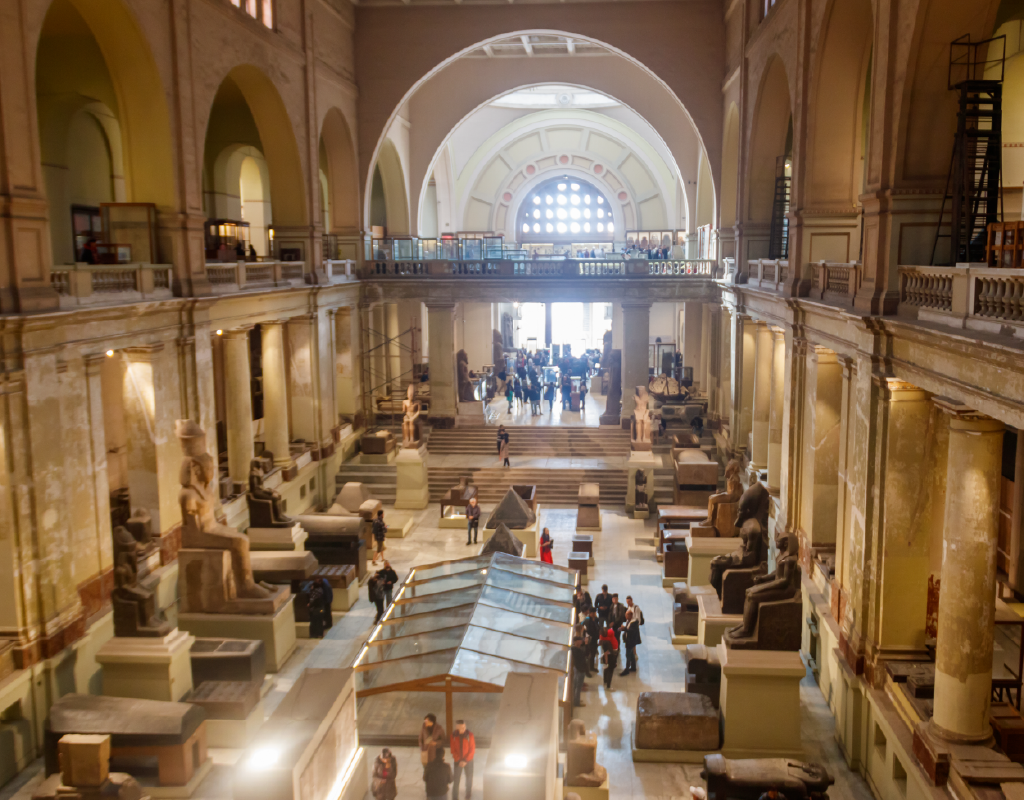 Poursuite vers le Musée National de la Civilisation Égyptienne (NMEC), inauguré en 2021, pour une visite centrée sur la Galerie des Momies et la compréhension du processus de momification. En milieu d’après-midi, retour à Gizeh afin de saisir les lumières du couchant derrière les pyramides.