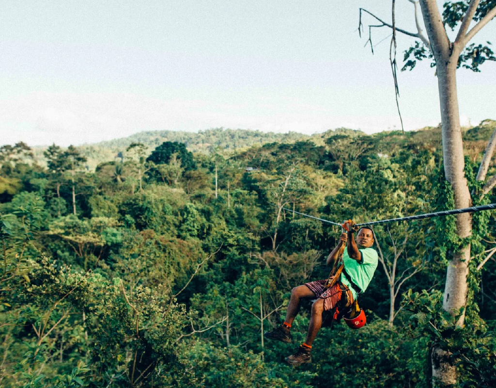 Réveil avec soleil levant sur la Côte Caraïbe du Costa Rica… Les matins offrent la véritable essence de la forêt tropicale lorsque la brume s’élève des montagnes. Un copieux petit déjeuner tico vous attend et vous aide à prendre des forces pour embarquer sur la première des 5 tyroliennes, faisant chacune la longueur de 4 terrains de football. Vous profitez ici d’une vue imprenable sur la rivière Pacuare, et même, la meilleure qu’il soit ! Ensuite, déjeuner puis randonnée dans la jungle jusqu’à l’une des chutes d’eau. Ici, qu’une seule façon de descendre : le saut de l’ange ! Le soir, moment de détente après cette journée aventure en famille 100% Nature