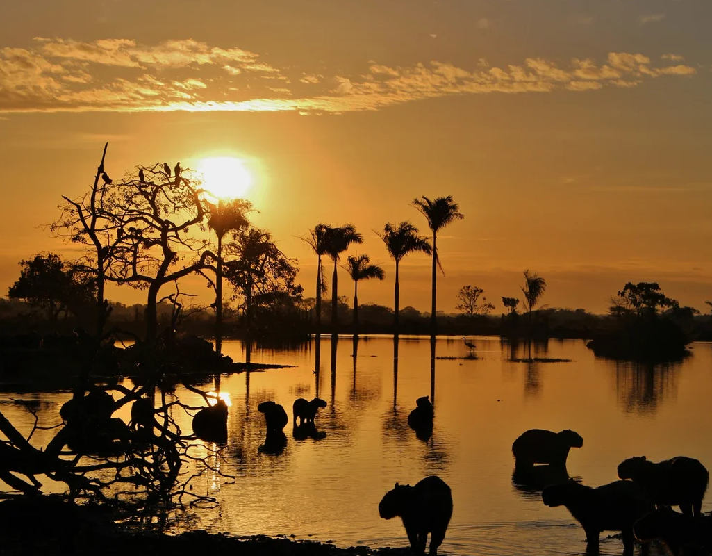 Après un bon petit déjeuner, vous prenez la route rejoindre 2 grandes réserves naturelles (Hato Matepalma et Hato Altamira), où vivent des capybaras, de grands félins (pumas, jaguars), des cerfs de Virginie, des caïmans, des singes, des tortues et oiseaux… Si vous êtes chanceux, vous pouvez même observer des anacondas et des fourmiliers ! Cette excursion en 4×4 offre un bel aperçu des merveilleux paysages des Llanos… Après un copieux déjeuner à la ferme de la réserve, sieste dans un bon hamac. Puis, découverte de la savane locale et ses magnifiques lacs. La faune devient plus abondante, le décor plus sauvage. Coucher de soleil puis nuit à Posada El Diamante en chambre Standard.