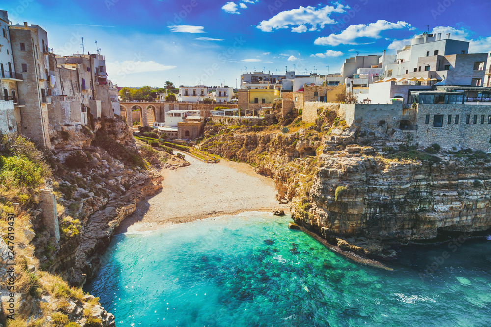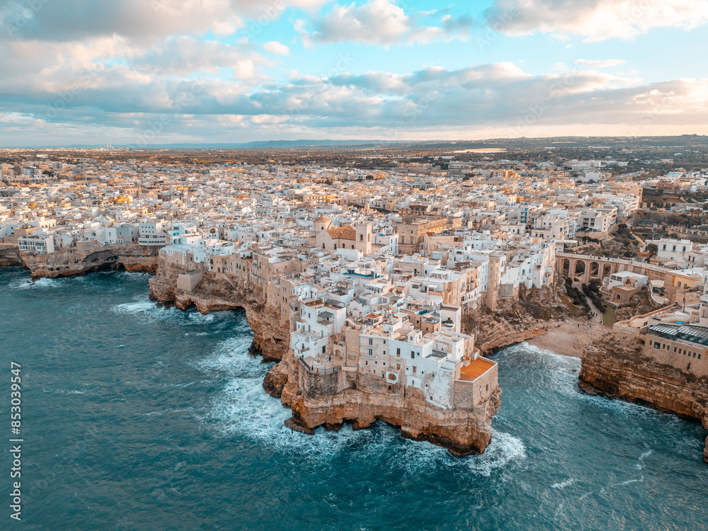 Monopoli & Polignano a Marecathédrale baroque, ruelles de Monopoli, puis falaises et vues mer.